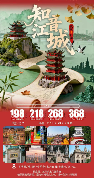 知音江城 武汉一日游¥198元/人 团期2.18/20/22日起 - 〉