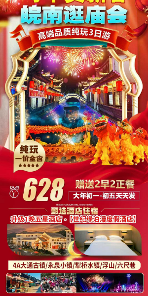 皖南逛庙纯玩3日游¥628元/人 大年初一/初五天天发起 - 〉
